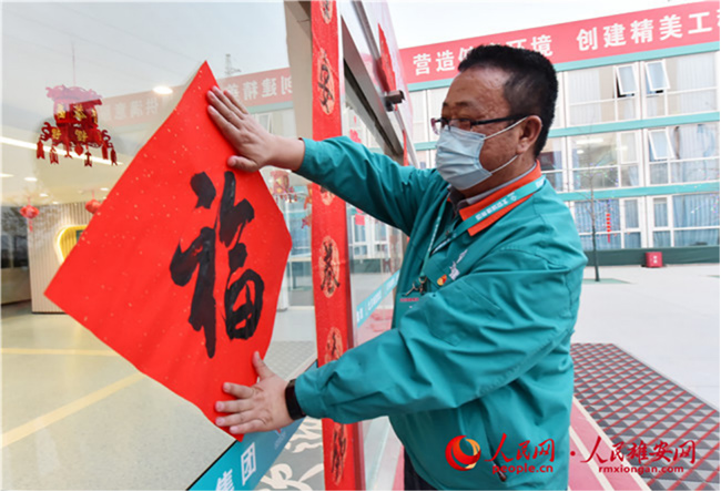 雄安新區(qū)容東片區(qū)B1組團安置房項目留雄過年建設(shè)者貼福字。