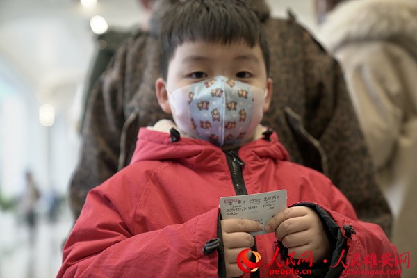 2020年12月27日上午,京雄城際鐵路全線開通運營,一位小朋友手里拿著雄安到北京西的車票。人民網(wǎng) 宋燁文攝
