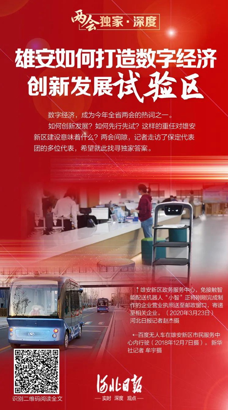 “數(shù)字經(jīng)濟(jì)是全球未來(lái)的發(fā)展方向。”在省人大代表、保定市市長(zhǎng)郭建英看來(lái),此次政府工作報(bào)告明確提出,“加快建設(shè)創(chuàng)新型河北、數(shù)字河北”“做大數(shù)字經(jīng)濟(jì)”的任務(wù)目標(biāo),為雄安新區(qū)加快發(fā)展數(shù)字經(jīng)濟(jì)提供了強(qiáng)有力的遵循和支撐,“雄安新區(qū)不可能孤立發(fā)展,它與保定乃至全省的發(fā)展息息相關(guān)。”