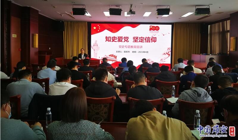 中國雄安官網(wǎng)4月14日電(李元闖)按照雄安新區(qū)黨工委管委會統(tǒng)一安排,4月12日,雄安新區(qū)黨工委宣講團成員、雄安新區(qū)黨工委委員、管委會副主任安慶杰以“知史愛黨 堅定信仰”為主題,結(jié)合新區(qū)規(guī)劃建設工作的開展,在容城縣奧威大廈進行黨史學習教育專題宣講。