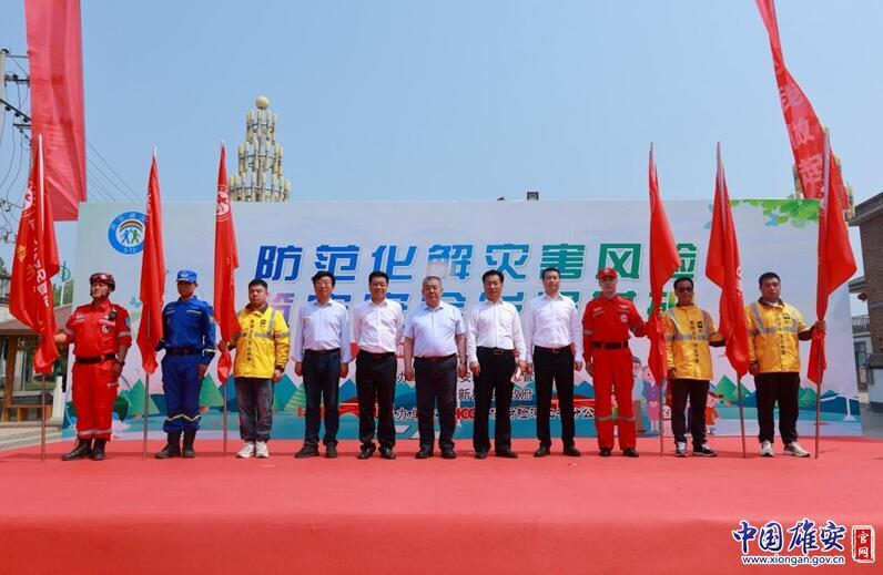 在全國防災(zāi)減災(zāi)日宣傳活動(dòng)現(xiàn)場,戴泊生向安新小學(xué)頒發(fā)省級(jí)地震科普教育示范學(xué)校牌匾,劉樹軍向東淀頭村頒發(fā)全國綜合減災(zāi)示范社區(qū)牌匾,兩位領(lǐng)導(dǎo)共同向雄州救援隊(duì)、雄風(fēng)救援隊(duì)、藍(lán)天救援隊(duì)、美團(tuán)代表隊(duì)等新區(qū)安全宣傳志愿者隊(duì)伍代表授旗。中國人民財(cái)產(chǎn)保險(xiǎn)股份有限公司雄安分公司籌建負(fù)責(zé)人張友林為活動(dòng)致開幕詞,中國福利基金會(huì)支持雄安公益基金執(zhí)行主任、北京支持雄安產(chǎn)業(yè)發(fā)展促進(jìn)會(huì)常務(wù)副會(huì)長兼秘書長彌雪向雄安新區(qū)捐贈(zèng)了高空細(xì)水霧滅火消防車。