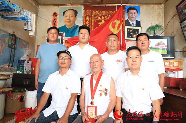 雄安安新縣寨南村96歲的雁翎隊(duì)老兵盧常祿與村“兩委”干部一同觀看慶祝大會(huì)直播。宋燁文/攝