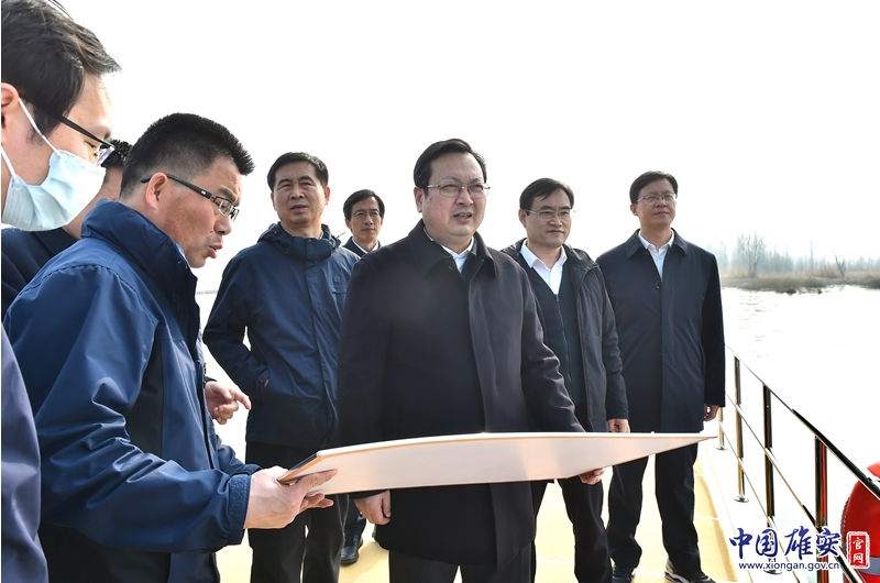 春日的白洋淀波光粼粼、水天一色、飛鳥翔集,一派生機勃勃的景象。張國華一行從安新縣白洋淀旅游碼頭乘船,先后來到正在實施的白洋淀內(nèi)部水流通道疏浚(百淀聯(lián)通)試點工程、燒車淀國控監(jiān)測點等處查看白洋淀生態(tài)環(huán)境修復(fù)保護、河道清理整治等情況,認(rèn)真聽取相關(guān)工作進展情況匯報。他強調(diào),要始終把白洋淀生態(tài)環(huán)境修復(fù)保護作為重大政治任務(wù),擔(dān)當(dāng)起治淀、護淀、興淀責(zé)任,不斷鞏固提升白洋淀生態(tài)環(huán)境修復(fù)保護來之不易的良好局面。要堅持補水、治污、防洪“三位一體”協(xié)調(diào)推進,加快推進生態(tài)清淤等治理工程,推動白洋淀水質(zhì)穩(wěn)中向好、水生態(tài)持續(xù)改善。要強化水資源優(yōu)化配置和管理,加快推進百淀聯(lián)通工程,打通淀區(qū)水流水系通道,優(yōu)化補水方式,提升水動力條件,讓白洋淀的水“活”起來。要以生態(tài)、休閑、紅色旅游為主題,推進白洋淀景區(qū)提檔升級,做好景區(qū)開放各項準(zhǔn)備工作,努力打造具有淀區(qū)特色的旅游文化品牌。要壓實各級河湖長責(zé)任,全力推動新區(qū)河湖長制工作“有名有責(zé)”“有能有效”,持續(xù)開展排查整治,不斷改善河湖生態(tài)質(zhì)量,讓新區(qū)水更清、岸更綠、景更美。