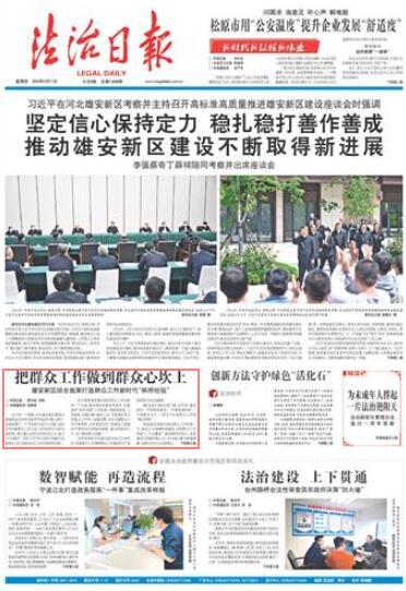 據(jù)《法治日報》記者了解,近年來,雄安新區(qū)一手抓陣地建設,一手建體制機制,一手提服務水平,三管齊下打造群眾工作的“雄安樣板”。