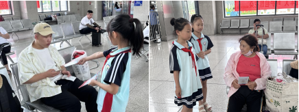 小學(xué)生們進(jìn)入候車大廳向旅客們宣講了反邪教、防范毒品、電信網(wǎng)絡(luò)詐騙等法律知識,營造了濃厚的法治宣傳氛圍。
