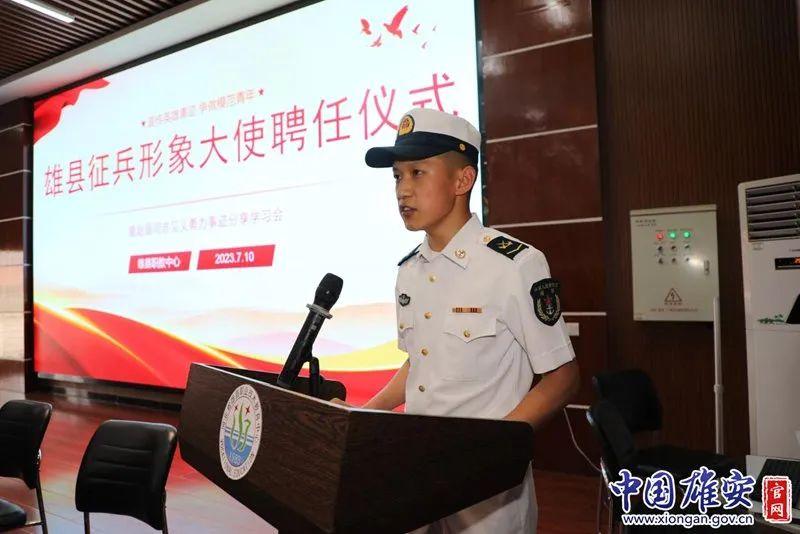 雄縣2023年征兵宣傳形象大使聘任儀式在雄安新區(qū)雄縣職教中心舉行,解放軍某部見義勇為軍士趙磊受聘為雄縣2023年征兵宣傳形象大使。