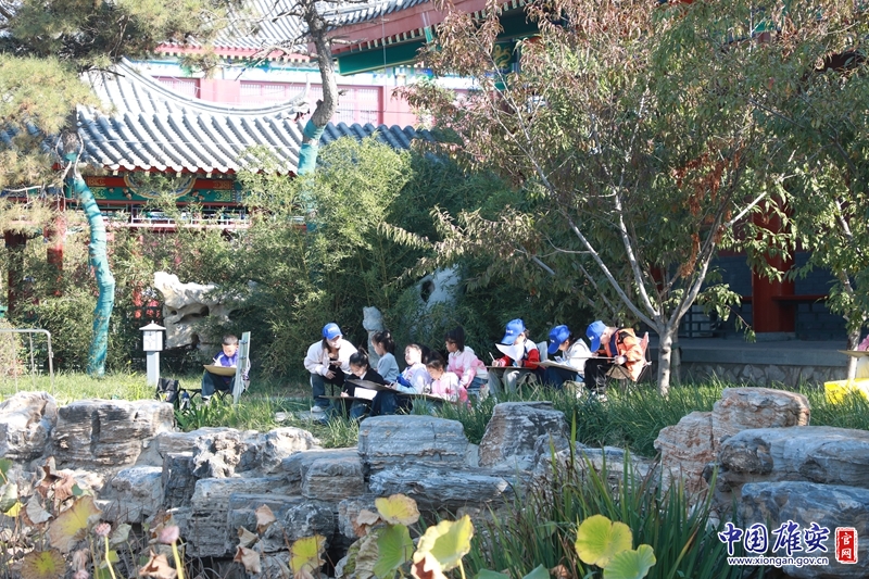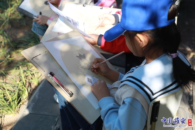 孩子們?cè)谧隼L畫(huà)準(zhǔn)備。雄安郊野公園供圖