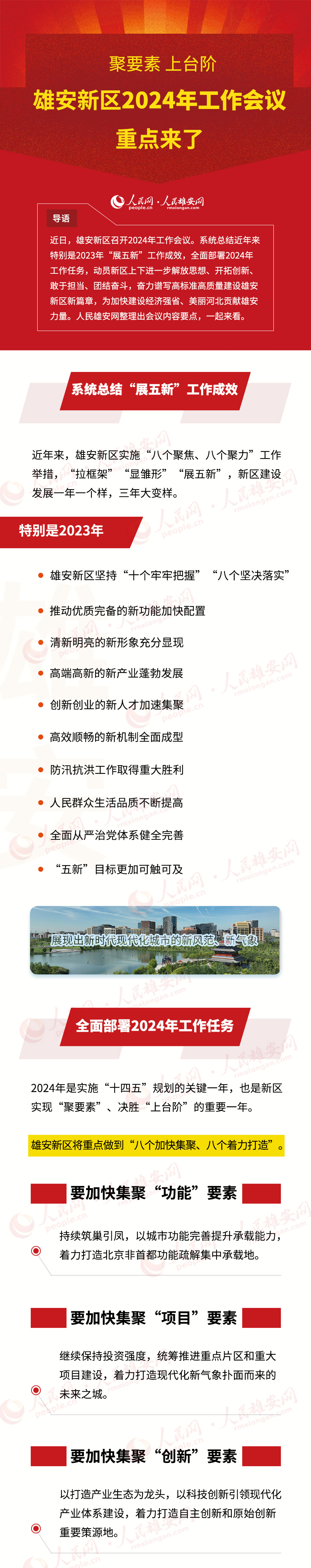 近日,雄安新區(qū)召開2024年工作會議。系統(tǒng)總結(jié)近年來特別是2023年“展五新”工作成效,全面部署2024年工作任務(wù),動員新區(qū)上下進(jìn)一步解放思想、開拓創(chuàng)新、敢于擔(dān)當(dāng)、團(tuán)結(jié)奮斗,奮力譜寫高標(biāo)準(zhǔn)高質(zhì)量建設(shè)雄安新區(qū)新篇章,為加快建設(shè)經(jīng)濟(jì)強(qiáng)省、美麗河北貢獻(xiàn)雄安力量。人民雄安網(wǎng)整理出會議內(nèi)容要點(diǎn),一起來看。