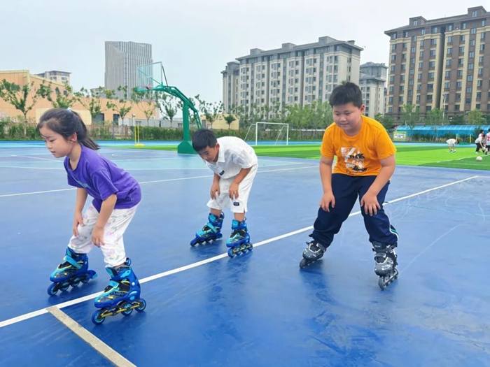 輪滑課上孩子們認(rèn)真練習(xí)每一個(gè)動(dòng)作 雄安容西云溪小學(xué)供圖
