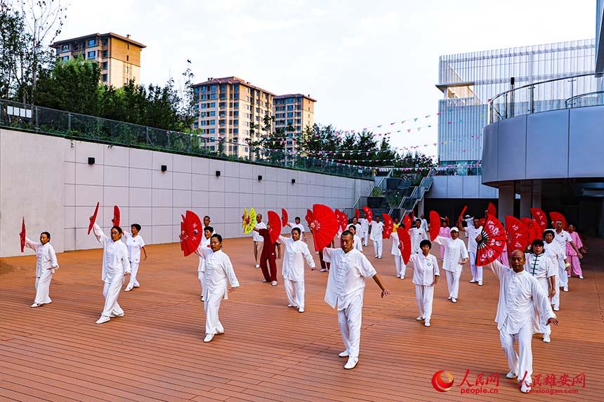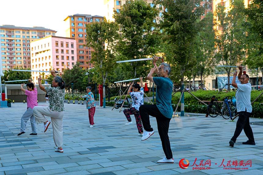 容東居民晨練太極扇。人民網 蘇春丹攝