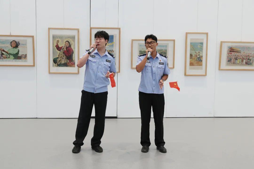 觀展結(jié)束后,伴隨著“我和我的祖國,一刻也不能分割。無論我走到哪里,都流出一首贊歌……”歌聲的響起,參展人員移步展廳中央,雄安公安文聯(lián)的表演者們伴隨著莊嚴(yán)激昂的旋律依次從人群中走出,《我和我的祖國》《追尋》《多情的土地》《我愛你中國》,一首首振奮人心的歌曲,唱出了慶祝新中國75周年華誕的喜悅,唱出了對祖國的自豪與驕傲。