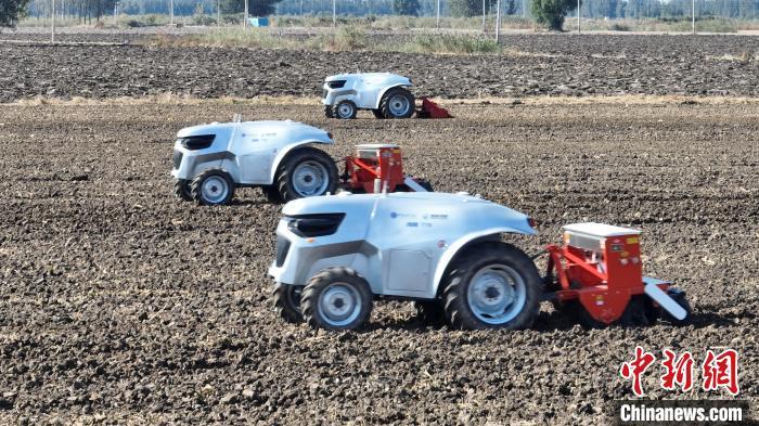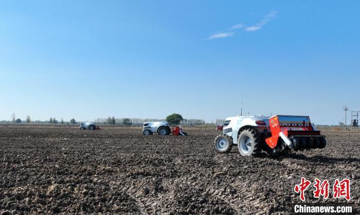 10月22日,河北雄安新區(qū)安新縣端村鎮(zhèn)關城二村一農(nóng)田內(nèi),幾臺“鴻鵠T70”電動智能拖拉機正在進行秋播作業(yè)。據(jù)了解,今年雄安新區(qū)公共服務局通過實施“雄安新區(qū)農(nóng)業(yè)全產(chǎn)業(yè)鏈數(shù)字化轉(zhuǎn)型示范應用場景項目”,重點打造“數(shù)字決策+無人農(nóng)機”的無人農(nóng)場示范場景,依托國家數(shù)字農(nóng)業(yè)區(qū)域(京津冀)創(chuàng)新分中心與中國科學院雄安創(chuàng)新研究院(籌)第三代新能源智能農(nóng)機技術(shù),在雄安新區(qū)實施5000畝農(nóng)田“耕、種、管、收”全鏈條環(huán)節(jié)無人化示范作業(yè)。