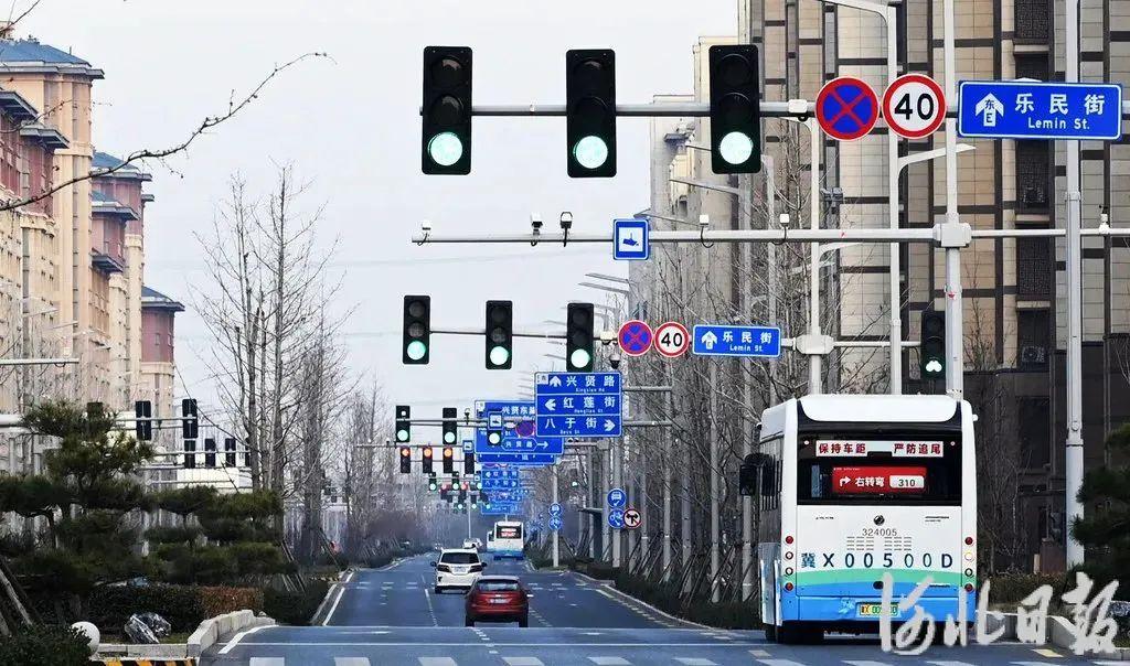 12月9日,雄安新區(qū)容東片區(qū)樂民街上,車輛在綠波路段順暢通行。河北日報記者劉光昱 攝