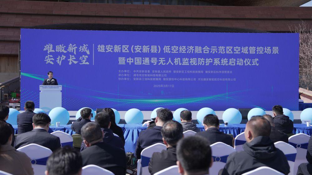 雄安新區(qū)(安新縣)低空經(jīng)濟(jì)融合示范區(qū)空域管控場(chǎng)景暨中國(guó)通號(hào)無人機(jī)監(jiān)視防護(hù)系統(tǒng)啟動(dòng)儀式現(xiàn)場(chǎng)。(受訪單位供圖)