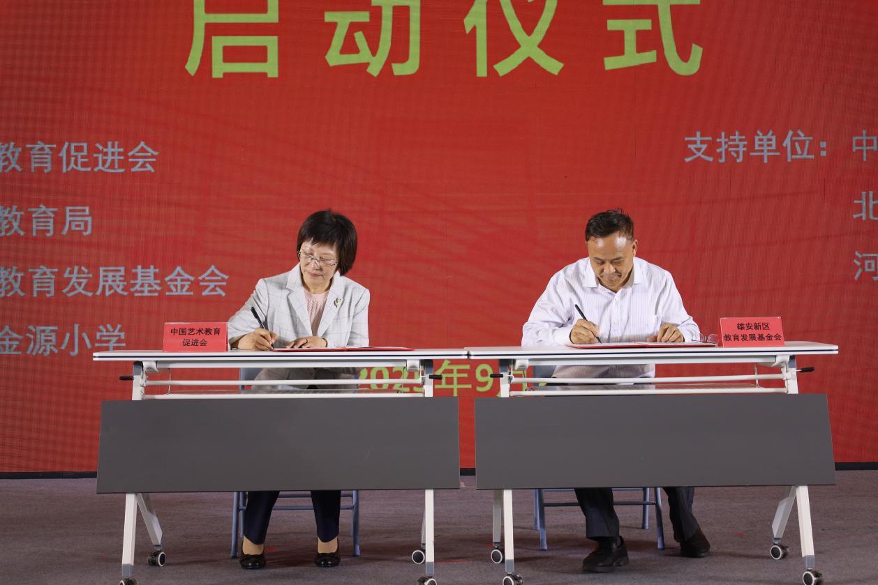 人民網(wǎng)雄安9月26日電 (記者宋燁文)9月25日,由中國藝術(shù)教育促進(jìn)會(huì)、雄安新區(qū)教育局、雄安新區(qū)教育發(fā)展基金會(huì)聯(lián)合主辦的“學(xué)校美育志愿服務(wù)行動(dòng)——雄安行”項(xiàng)目啟動(dòng)儀式在雄安容和金源小學(xué)舉行,現(xiàn)場,中國藝術(shù)教育促進(jìn)會(huì)與雄安新區(qū)教育發(fā)展基金會(huì)簽訂合作框架協(xié)議。
