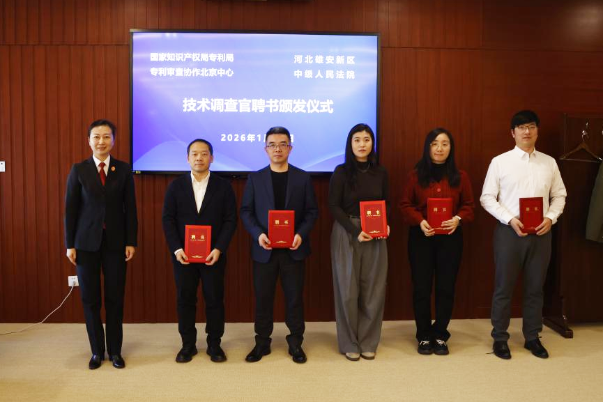 李靜靜在發(fā)言時指出,雄安中院牢記“打造貫徹落實新發(fā)展理念的創(chuàng)新示范區(qū)”的初心使命,充分發(fā)揮司法審判職能,以高質(zhì)量的知識產(chǎn)權(quán)審判護(hù)航雄安新區(qū)建設(shè)創(chuàng)新之城。雄安知識產(chǎn)權(quán)法庭始終致力于健全審判機(jī)制、提升專業(yè)能力、深化協(xié)同保護(hù),不斷加強(qiáng)知識產(chǎn)權(quán)專業(yè)化審判隊伍建設(shè)。本次受聘的技術(shù)調(diào)查官涵蓋機(jī)械、電學(xué)、通信、醫(yī)藥生物、化學(xué)、光電、材料和外觀設(shè)計八大領(lǐng)域,他們的加入進(jìn)一步增強(qiáng)了雄安中院知識產(chǎn)權(quán)專業(yè)化力量,為進(jìn)一步打造“技術(shù)調(diào)查+技術(shù)咨詢+技術(shù)鑒定+專家輔助+專家陪審”“五位一體”的技術(shù)事實查明機(jī)制,為切實提升技術(shù)類案件審判質(zhì)效提供有力支持。她希望,新任技術(shù)調(diào)查官要進(jìn)一步提高政治站位,恪守客觀公正立場,在未來的履職中發(fā)揮專長、貢獻(xiàn)力量,為雄安知識產(chǎn)權(quán)審判提供堅實支撐。