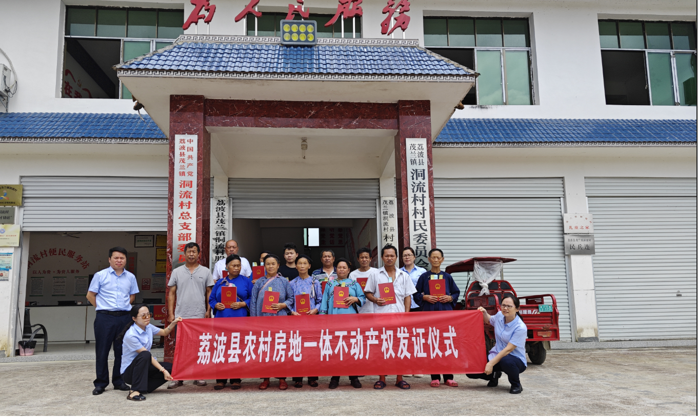 今年以來(lái),荔波縣政務(wù)服務(wù)中心聚焦偏遠(yuǎn)鄉(xiāng)鎮(zhèn)群眾辦證不便難題,組織不動(dòng)產(chǎn)綜合窗口工作人員下鄉(xiāng)開展集中頒證活動(dòng),將不動(dòng)產(chǎn)登記產(chǎn)權(quán)證書送到村民手中。