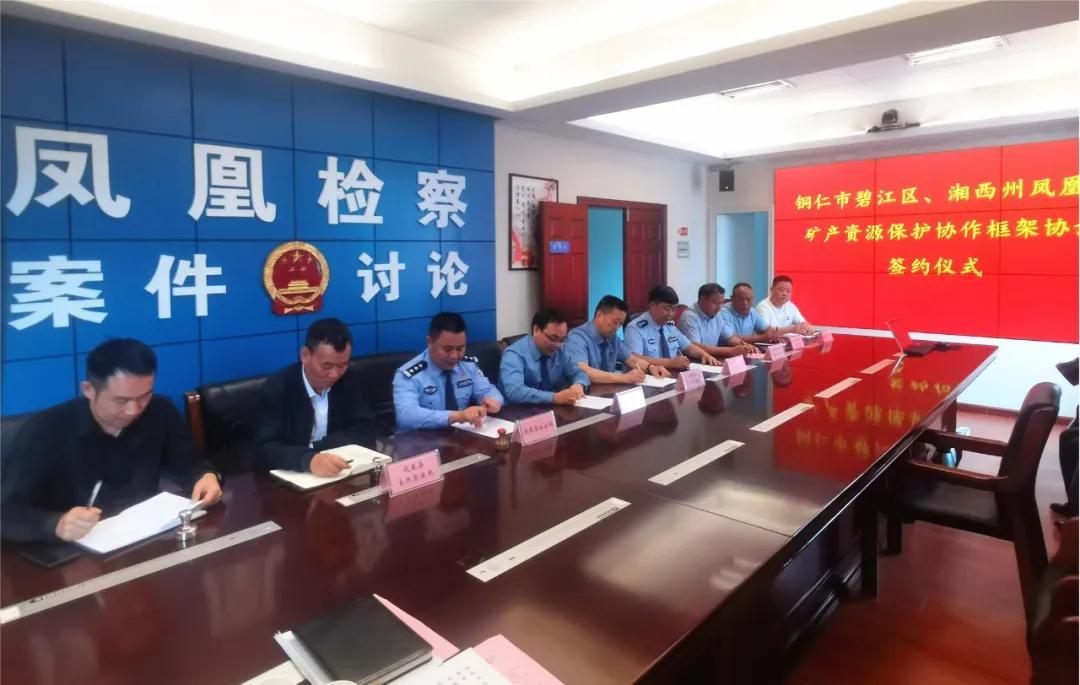 為有效針對(duì)跨區(qū)域難以有效打擊盜采礦產(chǎn)資源違法行為,破解行政機(jī)關(guān)“單打獨(dú)斗”“交界難管”局面。5月9日,碧江區(qū)檢察院聯(lián)合湖南省懷化市鳳凰縣檢察院等兩地8部門簽訂《碧江區(qū)、鳳凰縣礦產(chǎn)資源保護(hù)協(xié)作框架協(xié)議(試行)》,對(duì)協(xié)作原則及范圍、協(xié)作方式等進(jìn)行了明確的規(guī)定,建立溝通聯(lián)絡(luò)、信息共享、案件移送、重大案件跨區(qū)域辦理等8個(gè)協(xié)同機(jī)制。通過(guò)發(fā)揮各自職能,加強(qiáng)跨區(qū)域協(xié)作,共同化解礦產(chǎn)資源保護(hù)中區(qū)域分割的困難,推動(dòng)形成礦產(chǎn)資源跨區(qū)域司法保護(hù)合力。