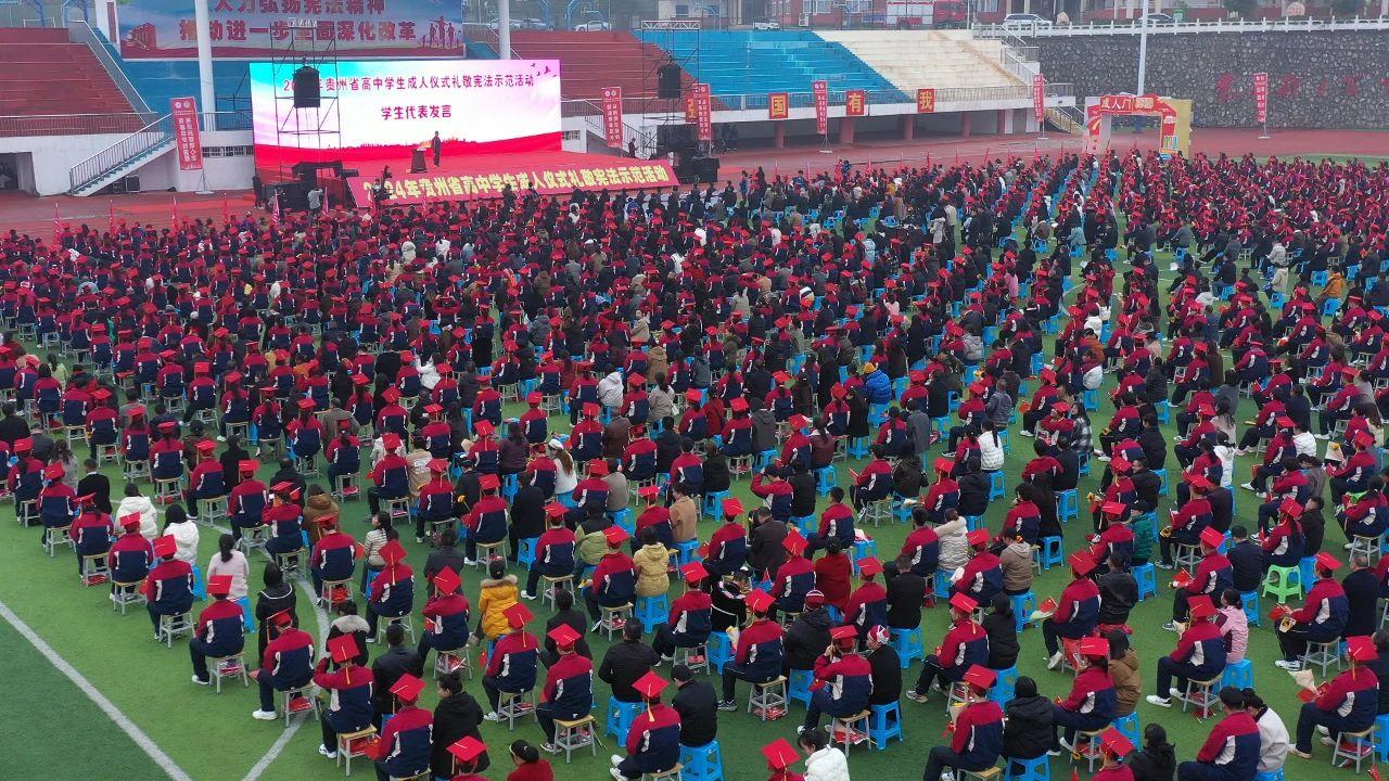 2024年12月4日是第十一個(gè)國(guó)家憲法日,貴州省教育廳、貴州省司法廳、共青團(tuán)省委在黔東南州凱里市第一中學(xué),舉辦主題為“弘揚(yáng)憲法精神、領(lǐng)航青春成長(zhǎng)”的貴州省高中學(xué)生成人儀式禮敬憲法示范活動(dòng)。