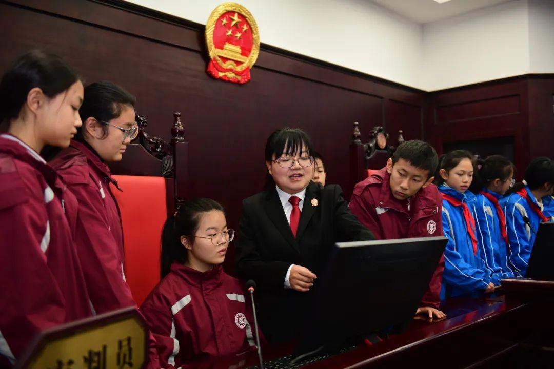 在貴州省高級人民法院高山流水銅浮雕前,大家認真聽取講解員介紹,了解審判文化、法治文化。“大家知道民事審判法庭和刑事審判法庭的區(qū)別嗎?”走進審判法庭,大家興致勃勃地觀摩了解智慧庭審系統(tǒng)功能、審判法庭設置等,湊到話筒前,直觀感受智能語音識別等智能輔助功能的便捷高效。