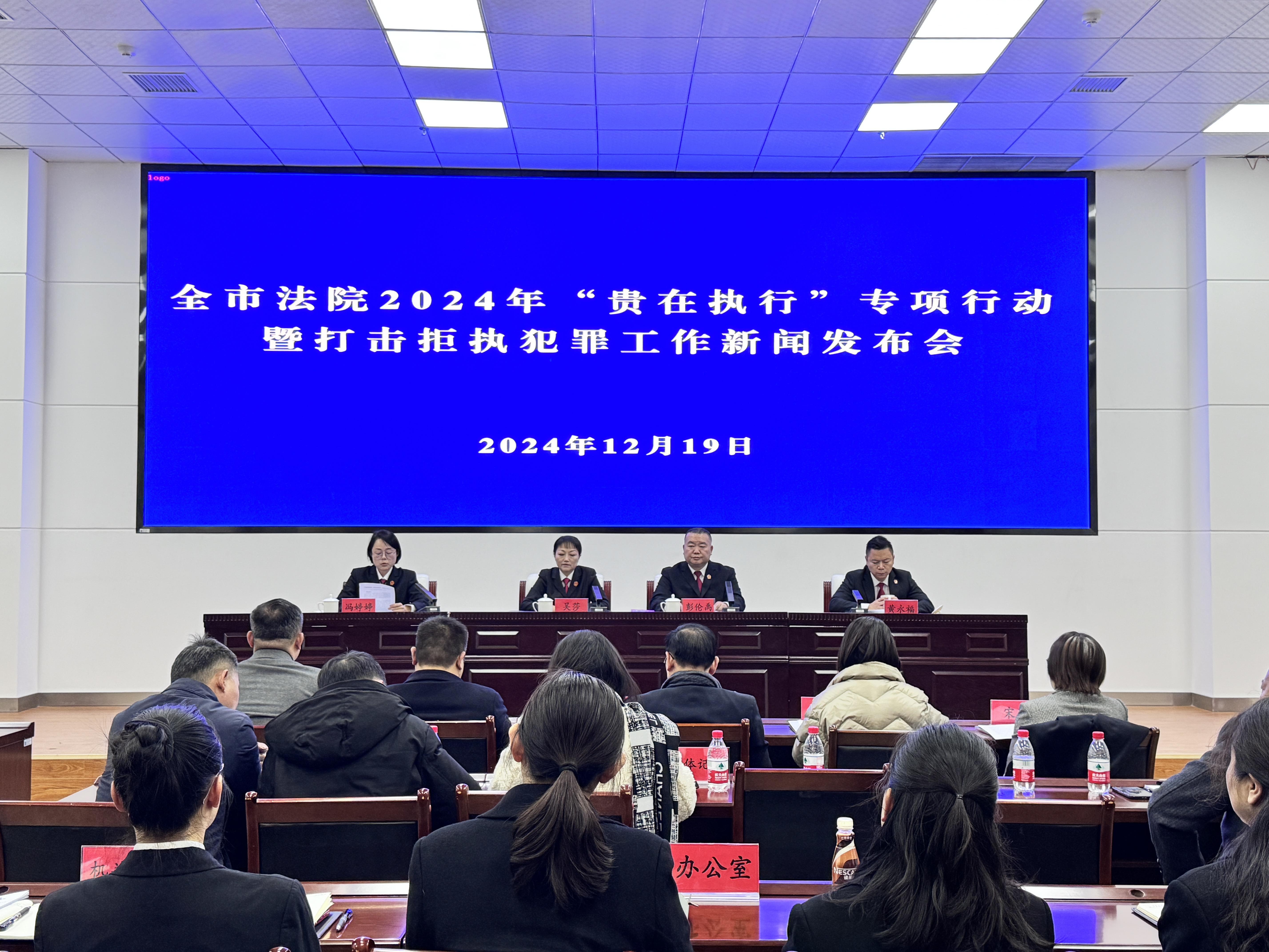 12月19日,貴州省貴陽市中級人民法院召開“貴在執(zhí)行”專項行動暨打擊拒執(zhí)犯罪工作新聞發(fā)布會,通報2024年全市法院“貴在執(zhí)行”專項行動的開展情況及打擊拒執(zhí)犯罪情況。