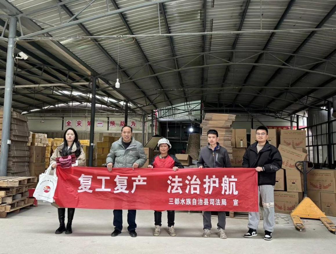 春節(jié)假期結(jié)束后,各企業(yè)陸續(xù)恢復(fù)工作。為確保企業(yè)合法、有序和高效地復(fù)工復(fù)產(chǎn),有效預(yù)防和遏制企業(yè)違法事件的發(fā)生,進(jìn)一步優(yōu)化和提升法治化營商環(huán)境,2月8日,貴州省黔南州三都縣司法局普安司法所深入普安鎮(zhèn)轄區(qū)各企業(yè),開展以“復(fù)工復(fù)產(chǎn) 法治護(hù)航”為主題的送法進(jìn)企業(yè)宣傳活動。