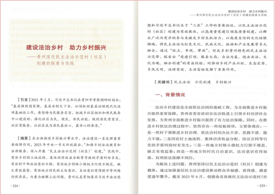《建設(shè)法治鄉(xiāng)村 助力鄉(xiāng)村振興—貴州深化民主法治示范村(社區(qū))創(chuàng)建的探索與實踐》入選第六批全國干部學習培訓教材。