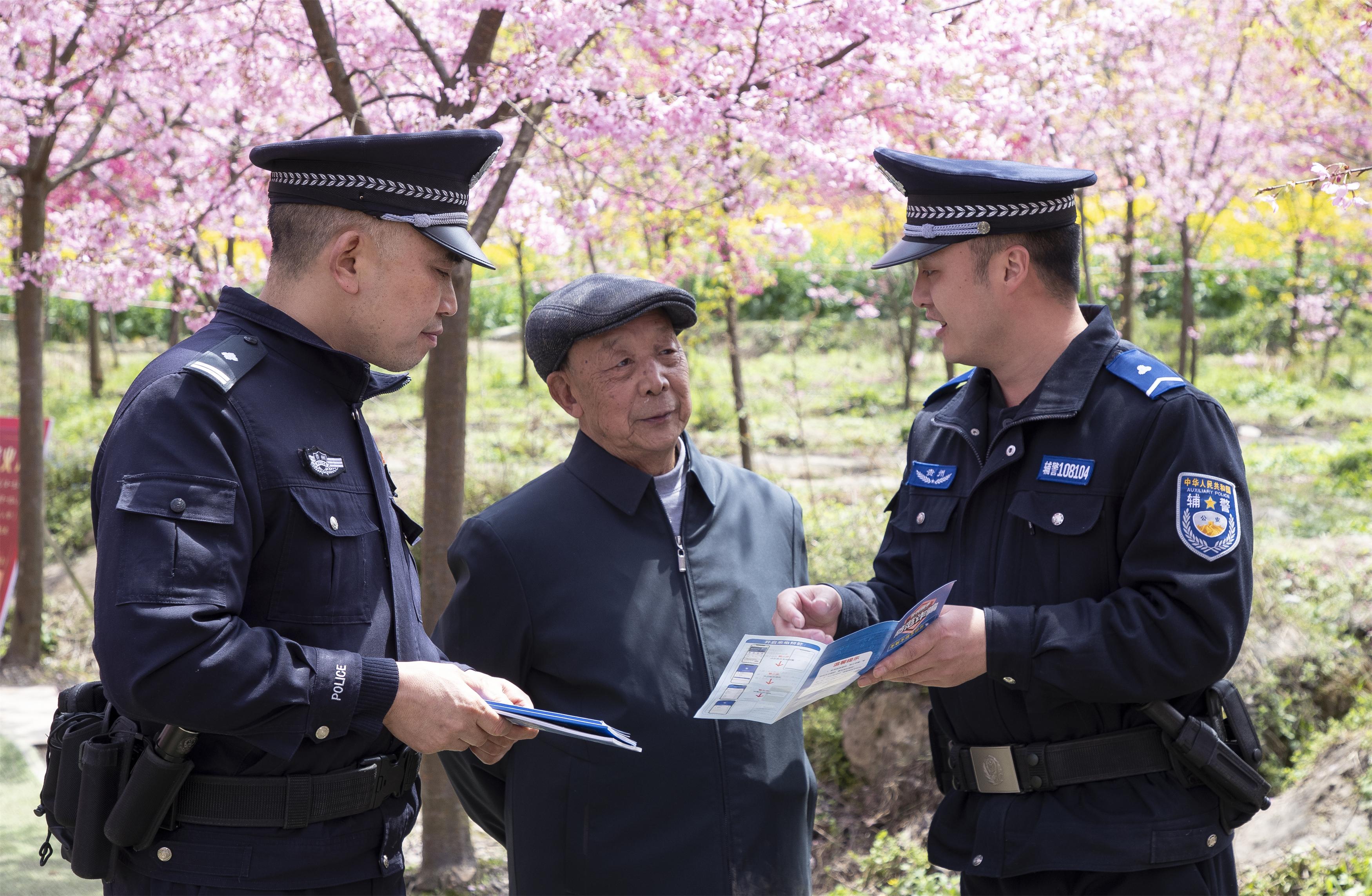 景美入眼簾,警心佑君安?!鞍⒁?,您看這櫻花多美,但也要小心腳下,別光顧著拍照忘了安全?!痹趶澢泥l(xiāng)間小道上,巡邏民警不斷提醒過(guò)往游客注意安全。