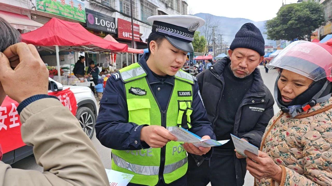 在農(nóng)村趕集日,宣傳民警來到集市中心,設(shè)置宣傳點(diǎn),擺放交通安全宣傳展板,并向群眾發(fā)放宣傳手冊(cè)。與此同時(shí),為助力群眾合法合規(guī)上路行駛,民輔警還現(xiàn)場(chǎng)詳細(xì)講解摩托車上牌辦證的規(guī)范流程,引導(dǎo)群眾主動(dòng)遵守交通法規(guī)。