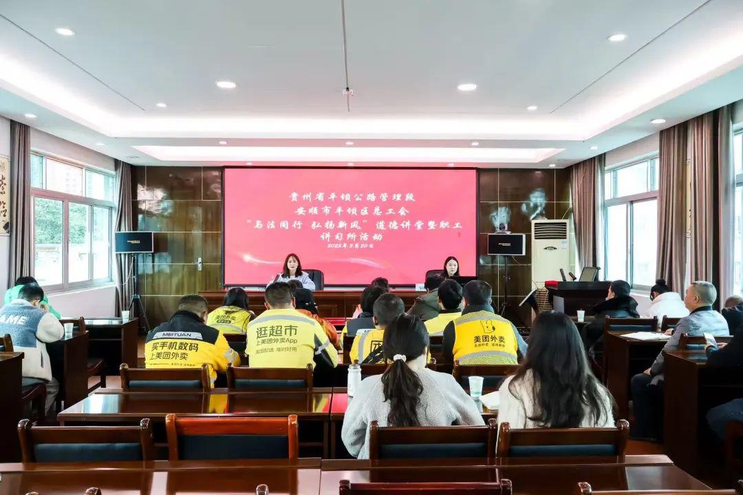 近日,貴州省安順市平壩區(qū)總工會與貴州省平壩公路管理段聯(lián)合舉辦了“與法同行 弘揚新風”職工講習所宣講宣傳活動,旨在加強法治宣傳,提升干部職工法律意識,助力精神文明與廉潔文化建設?;顒游似綁螀^(qū)總工會代表、京平環(huán)衛(wèi)工人、美團騎手及平壩公路管理段職工等 50余名新就業(yè)形態(tài)勞動者參與。
