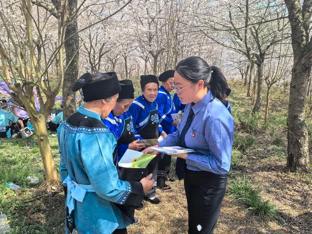 春意漸濃,櫻花盛放。近日,貴州省安順市西秀區(qū)黃臘鄉(xiāng)櫻花園內(nèi),一場別開生面的反詐宣傳活動如約而至。由安順市人民檢察院、安順市公安局、安順市人民銀行聯(lián)合主辦的“櫻舞春風(fēng)·反詐同行”主題活動,將反詐宣傳與春日賞櫻場景深度融合。安順市人民檢察院聯(lián)合西秀區(qū)人民檢察院開展法治宣傳,用一抹“檢察藍”守護群眾的“錢袋子”,為浪漫櫻花季增添法治溫度。