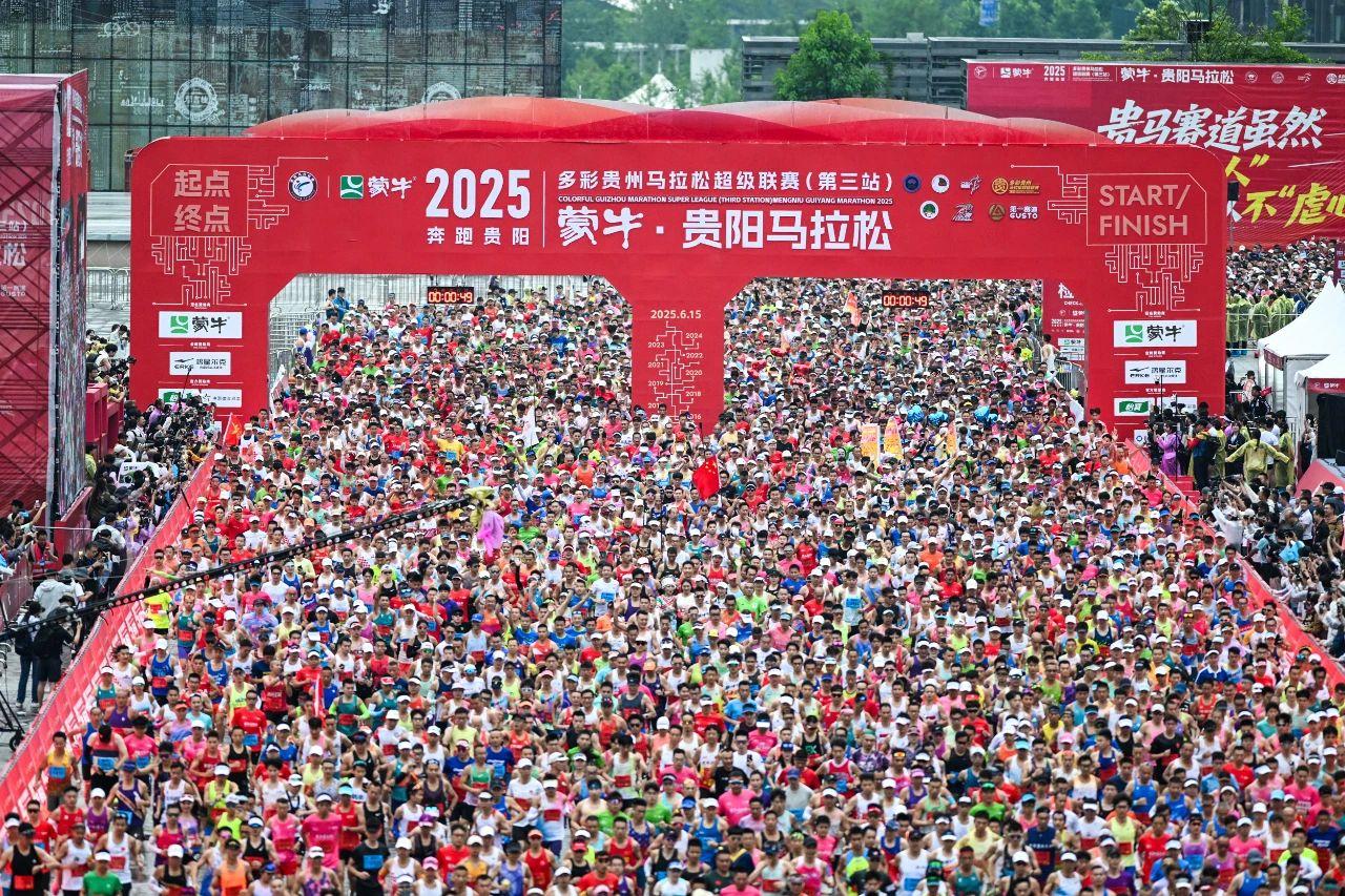 6月15日,2025多彩貴州馬拉松超級(jí)聯(lián)賽(第三站)蒙?!べF陽(yáng)馬拉松在貴州省貴陽(yáng)市國(guó)際會(huì)展中心北廣場(chǎng)激情開(kāi)跑。來(lái)自新加坡、肯尼亞、英國(guó)、澳大利亞等26個(gè)國(guó)家和地區(qū),全國(guó)34個(gè)省、自治區(qū)、直轄市以及港澳臺(tái)地區(qū)的3.5萬(wàn)名跑者齊聚林城,共同感受“爽爽貴陽(yáng)”的獨(dú)特魅力。