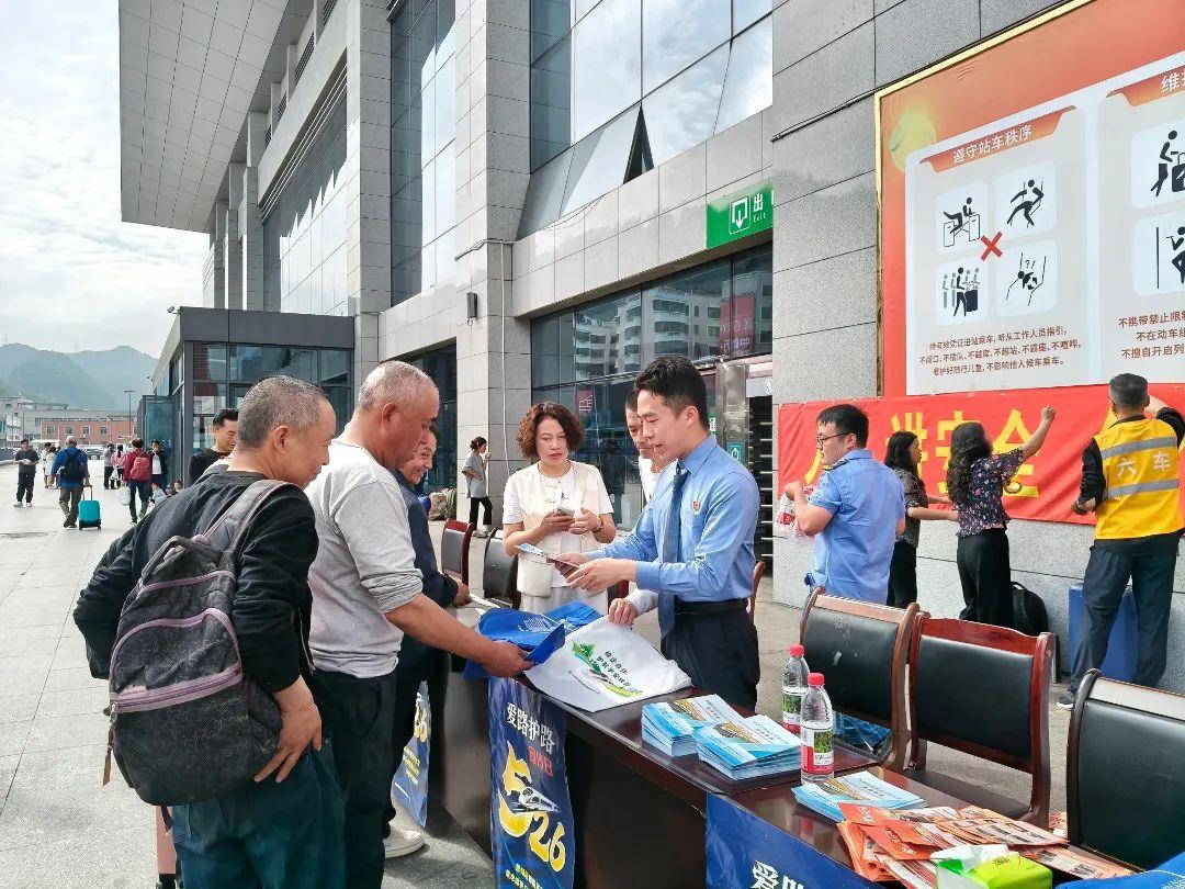 據(jù)了解,宣傳現(xiàn)場不僅發(fā)放各類法律法規(guī)宣傳資料,還通過音響語音播放鐵路法律法規(guī)及相關(guān)安全知識,組織群眾參與現(xiàn)場互動。六盤水市人民檢察院、六盤水工電段、六盤水車務(wù)段、六盤水鐵路派出所等單位向來往群眾講解了有關(guān)鐵路安全的法律法規(guī)。