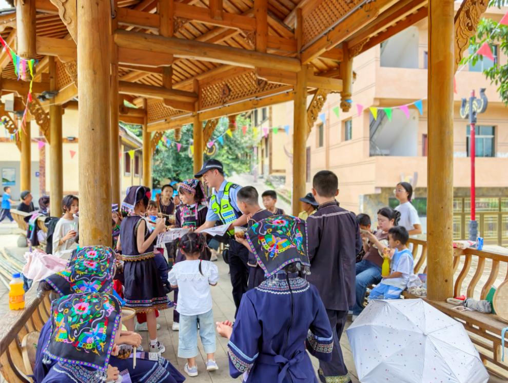 近日,貴州省六盤(pán)水市六枝特區(qū)2025年全國(guó)夏季“村晚”示范點(diǎn)展示活動(dòng)之享“村趣”傳統(tǒng)民俗體驗(yàn)活動(dòng)在牂牁鎮(zhèn)自強(qiáng)廣場(chǎng)開(kāi)展,活動(dòng)引來(lái)周邊上百群眾和游客前來(lái)觀(guān)看參加。借此機(jī)會(huì),六枝特區(qū)公安局交通警察大隊(duì)在做好道路交通安保工作的同時(shí),以該民俗活動(dòng)為契機(jī),結(jié)合夏季交通安全出行特點(diǎn),組織執(zhí)勤交警走進(jìn)民俗活動(dòng)現(xiàn)場(chǎng),開(kāi)展農(nóng)村夏季交通安全宣傳。