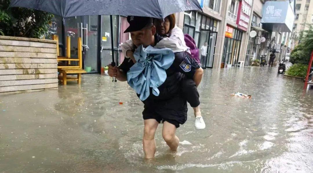 終于,在一居民區(qū)樓下發(fā)現(xiàn)了被困店內(nèi)的六人。此時,店外的積水已深達30-40厘米,沒過了膝蓋!眼看被困群眾多為行動不便的老人,民警何光偉毫不猶豫地喊道:“脫鞋!挽褲腳!跟我上!”他帶頭與隊員蹚入渾濁的積水中,將被困群眾一個一個背到安全地帶,同時緊急聯(lián)系消防隊增援。