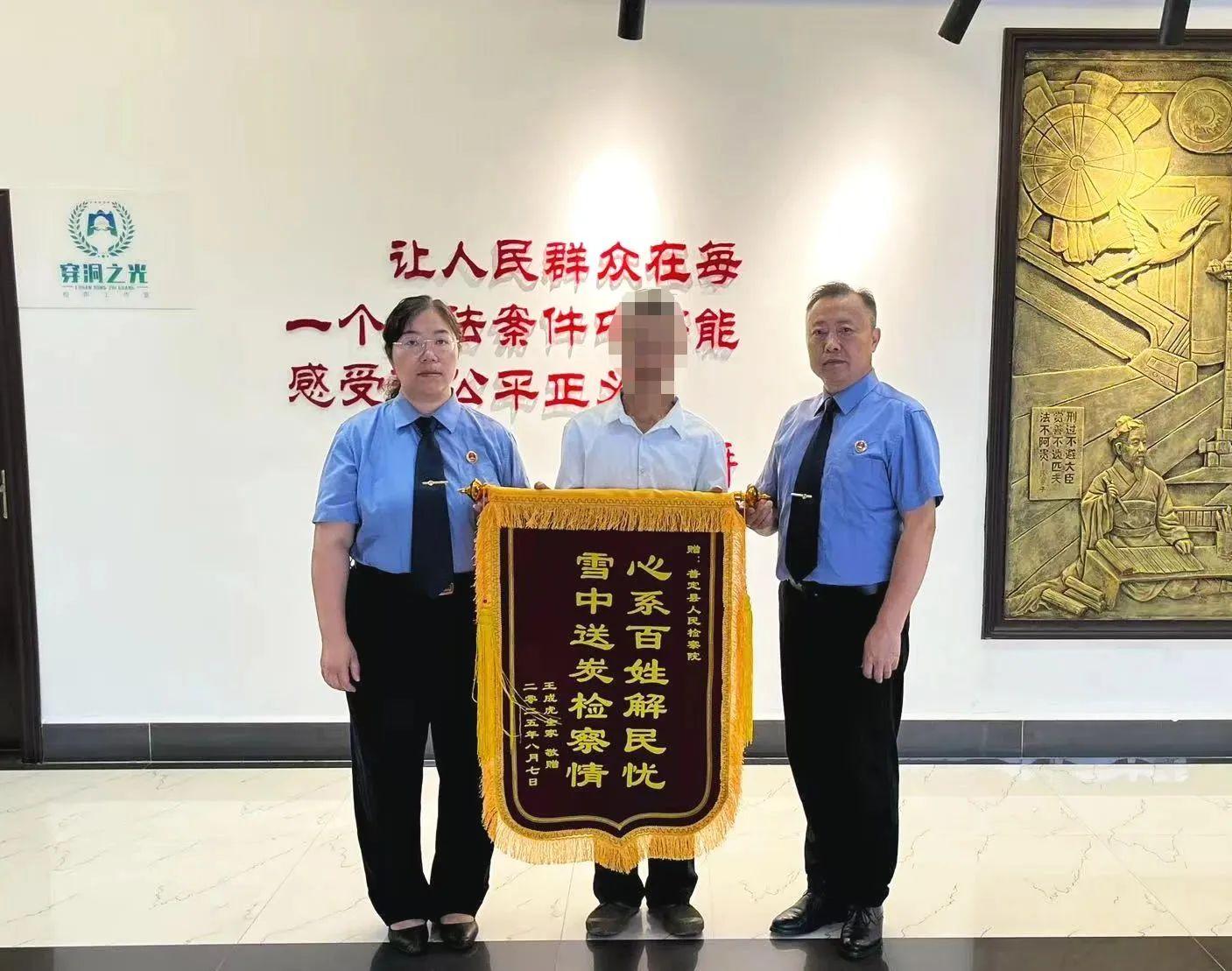 近日,貴州省安順市普定縣人民檢察院12309檢察服務(wù)中心收到一面印著“心系百姓解民憂、雪中送炭檢察情”的錦旗,贈送錦旗的王家人聲音哽咽,反復(fù)說著“謝謝檢察官”的話語。這面沉甸甸的錦旗,不僅承載著一份最真摯的謝意,更是一個曾瀕臨崩潰的被害人家庭渡過難關(guān)的無聲見證。群眾的這份由衷贊譽(yù),便是對檢察工作最真實的回應(yīng),也是最溫暖的肯定。