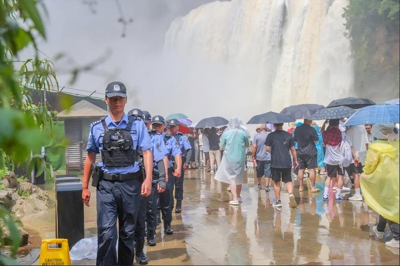 而這樣的瞬間,在年均接待游客580萬人次的世界級景區(qū)黃果樹瀑布每天都在上演,景區(qū)治安派出所的6名民警和53名輔警以“景警融合”的模式,守護(hù)著115平方公里的景區(qū)安全,成為一道獨(dú)特而亮麗的風(fēng)景線。