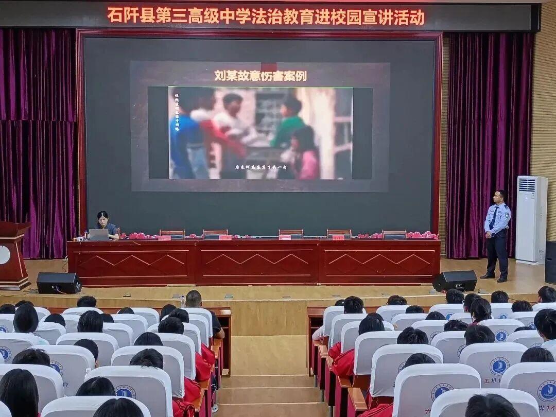 在中學(xué)課堂,貴州省未管所受邀聯(lián)合貴州省銅仁市石阡縣法院啟動(dòng)“未愛護(hù)航法伴青春”系列專項(xiàng)活動(dòng),民警與法院工作人員組成的宣講團(tuán)隊(duì)先后走進(jìn)石阡縣5所中學(xué),聚焦青少年犯罪預(yù)防與自我保護(hù)兩大核心,通過“案例剖析+法律解讀+互動(dòng)問答”的形式深入淺出講解相關(guān)知識(shí),讓師生在沉浸式課堂中樹立法治意識(shí);白云監(jiān)獄民警李燕瓊則在貴陽市第三中學(xué)以“年齡不是護(hù)身符”為主題,通過“網(wǎng)絡(luò)犯罪”“毒品宣教”“互動(dòng)問答”三個(gè)模塊,并借助“警察小熊”調(diào)動(dòng)現(xiàn)場氛圍,將法治教育與學(xué)生生活緊密結(jié)合,有效提升學(xué)生法治觀念與自我保護(hù)能力。