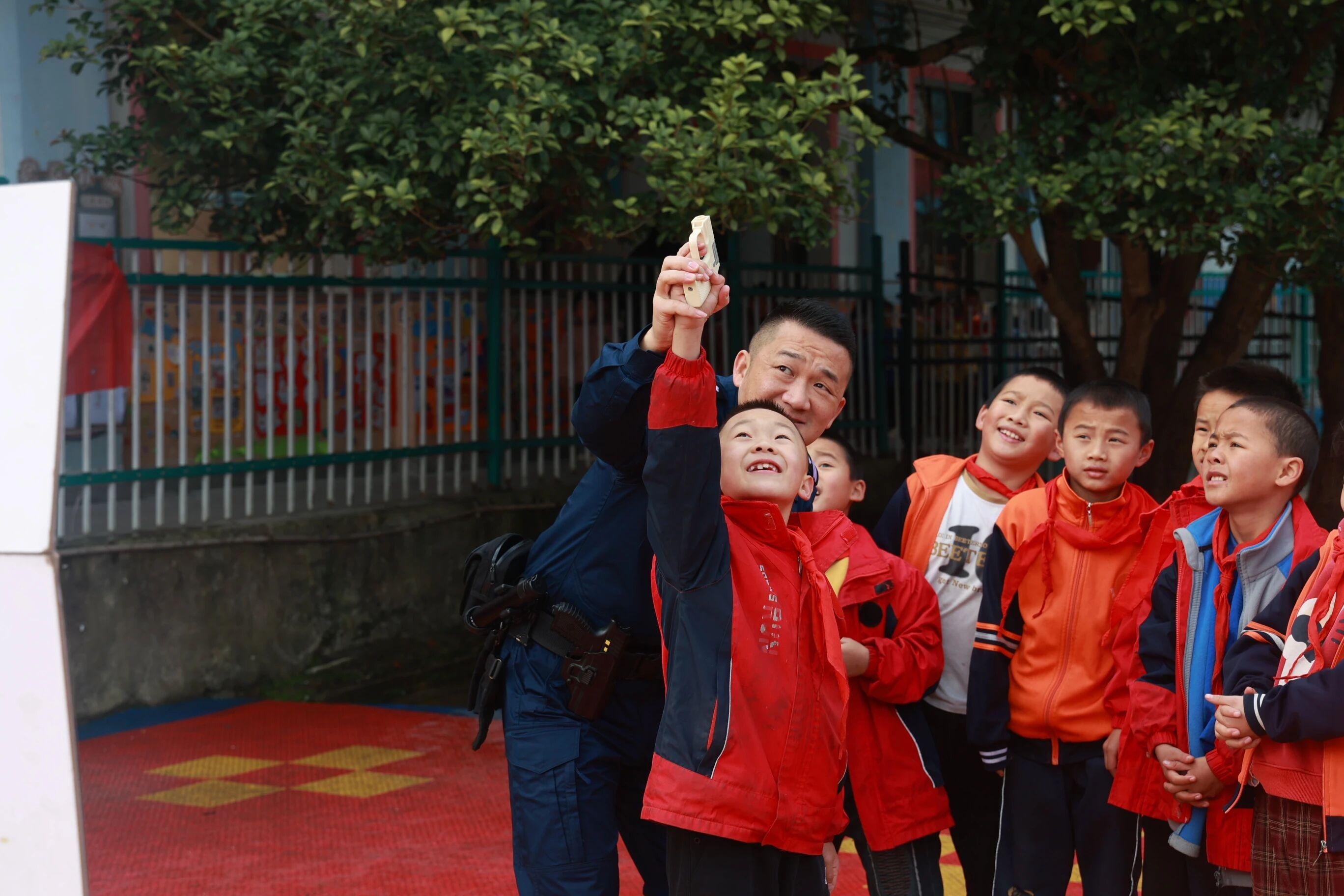 活動伊始,法警隊長的“防衛(wèi)小課堂”迅速吸引全場關(guān)注。“小朋友,路上遇到壞人想拉你走,第一反應(yīng)該怎么做?”問題剛一拋出,“快跑!”“大聲呼救!”等回答此起彼伏。隨后,隊長現(xiàn)場邀請同學(xué)上臺,演示實用防衛(wèi)技巧,孩子們模仿得認(rèn)真到位,在互動中增強了自我保護的信心。