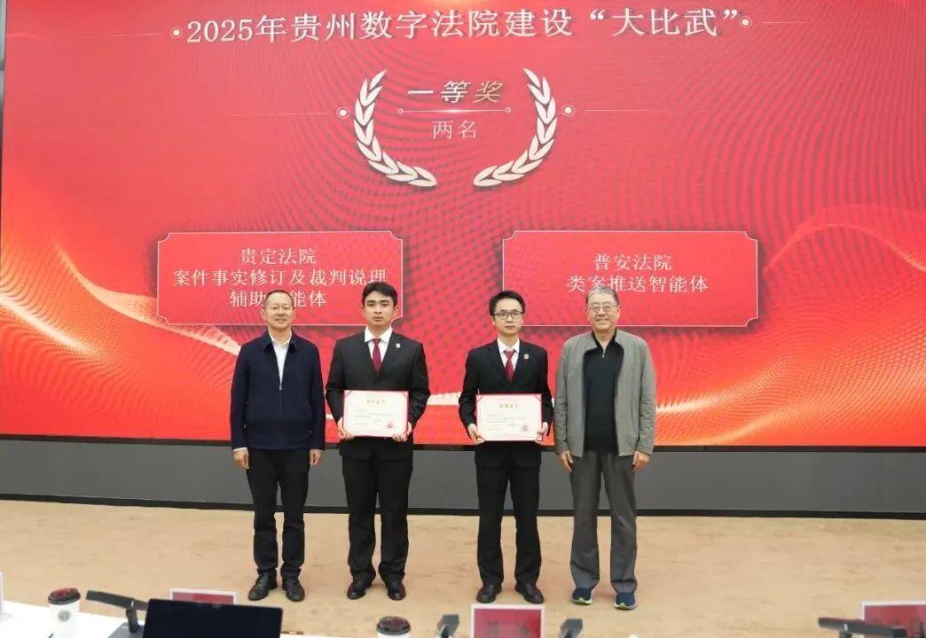 12月2日,貴州省法院舉辦2025年數(shù)字法院建設(shè)“大比武”終評(píng)評(píng)審活動(dòng)。省法院黨組書(shū)記、院長(zhǎng)茆榮華參加活動(dòng)并致辭,上海交通大學(xué)凱原法學(xué)院、智慧司法研究院特聘教授許建峰,省法院二級(jí)巡視員李丹,省委政法委一級(jí)調(diào)研員、綜治中心主任馬波,上海交通大學(xué)凱原法學(xué)院、智慧司法研究院常務(wù)副院長(zhǎng)楊力,貴州大學(xué)大數(shù)據(jù)與信息工程學(xué)院院長(zhǎng)田有亮,貴州民族大學(xué)數(shù)據(jù)科學(xué)與信息工程學(xué)院院長(zhǎng)霍雨佳,西南政法大學(xué)人工智能法學(xué)院副教授、法律科技研究院律泰法律科技實(shí)驗(yàn)室副主任顏卉擔(dān)任專(zhuān)家評(píng)委。省法院在家院領(lǐng)導(dǎo)、各部門(mén)負(fù)責(zé)人及各參賽法院相關(guān)人員參加活動(dòng)。