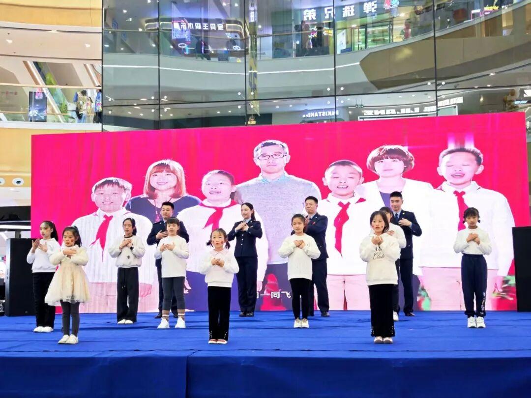 圖為黔南州稅務(wù)局普法工作者與小朋友們共同演繹手勢舞《憲法伴我成長》。