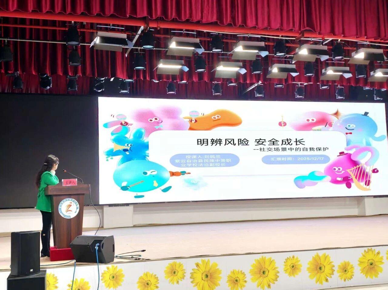 近日,一場別開生面的“護航青春 健康同行”青少年自我保護專題講座在貴州省安順市紫云苗族布依族自治縣民族中等職業(yè)學校舉行。本次活動由貴州省安順市紫云自治縣司法局、縣計劃生育協(xié)會、縣疾控中心與學校聯(lián)合舉辦,縣司法局黨組書記、局長劉筑蘭以法治副校長身份,為青少年提供一堂涵蓋法治、安全與健康的法治實踐課。