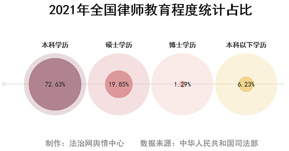 從教育程度來看,高學(xué)歷是律師隊伍典型特征,本科及以上學(xué)歷占比達93.77%。