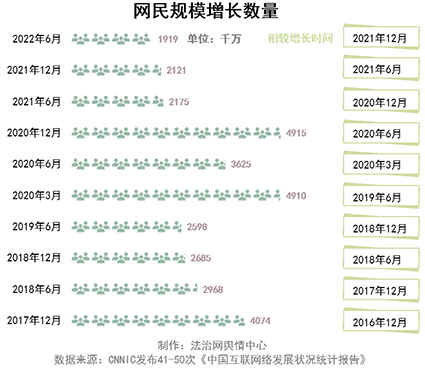 第50次《報(bào)告》顯示,2022年6月相較于2021年12月新增網(wǎng)民1919萬人。