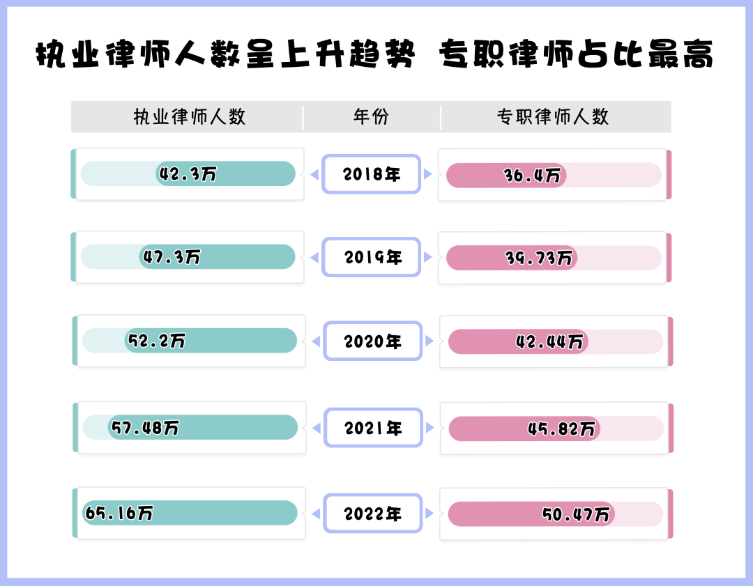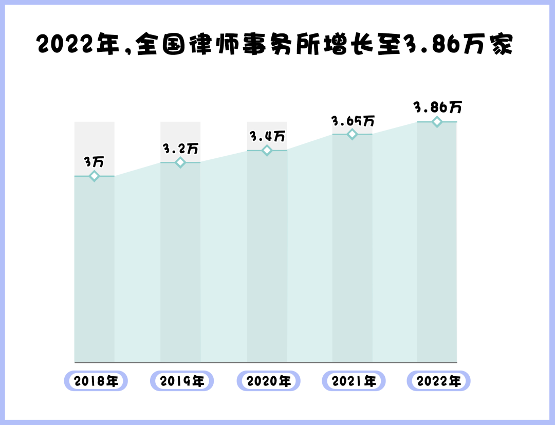 據(jù)司法部發(fā)布的官方數(shù)據(jù)顯示,截至2022年底,全國(guó)執(zhí)業(yè)律師已達(dá)65.16萬(wàn)多人,全國(guó)律師事務(wù)所數(shù)量已經(jīng)增長(zhǎng)至3.86萬(wàn)家,我國(guó)律師隊(duì)伍不斷壯大。