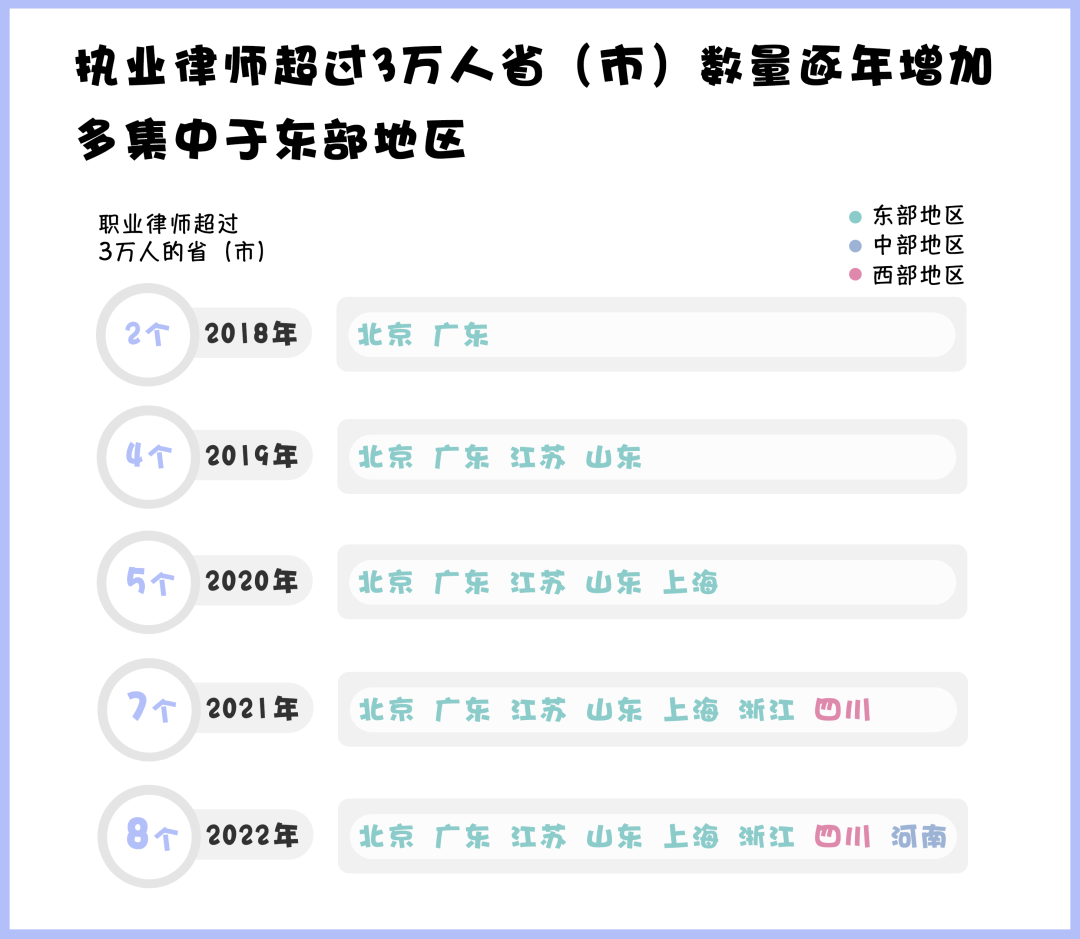 一、全國(guó)律師隊(duì)伍不斷壯大,東部地區(qū)發(fā)展更快