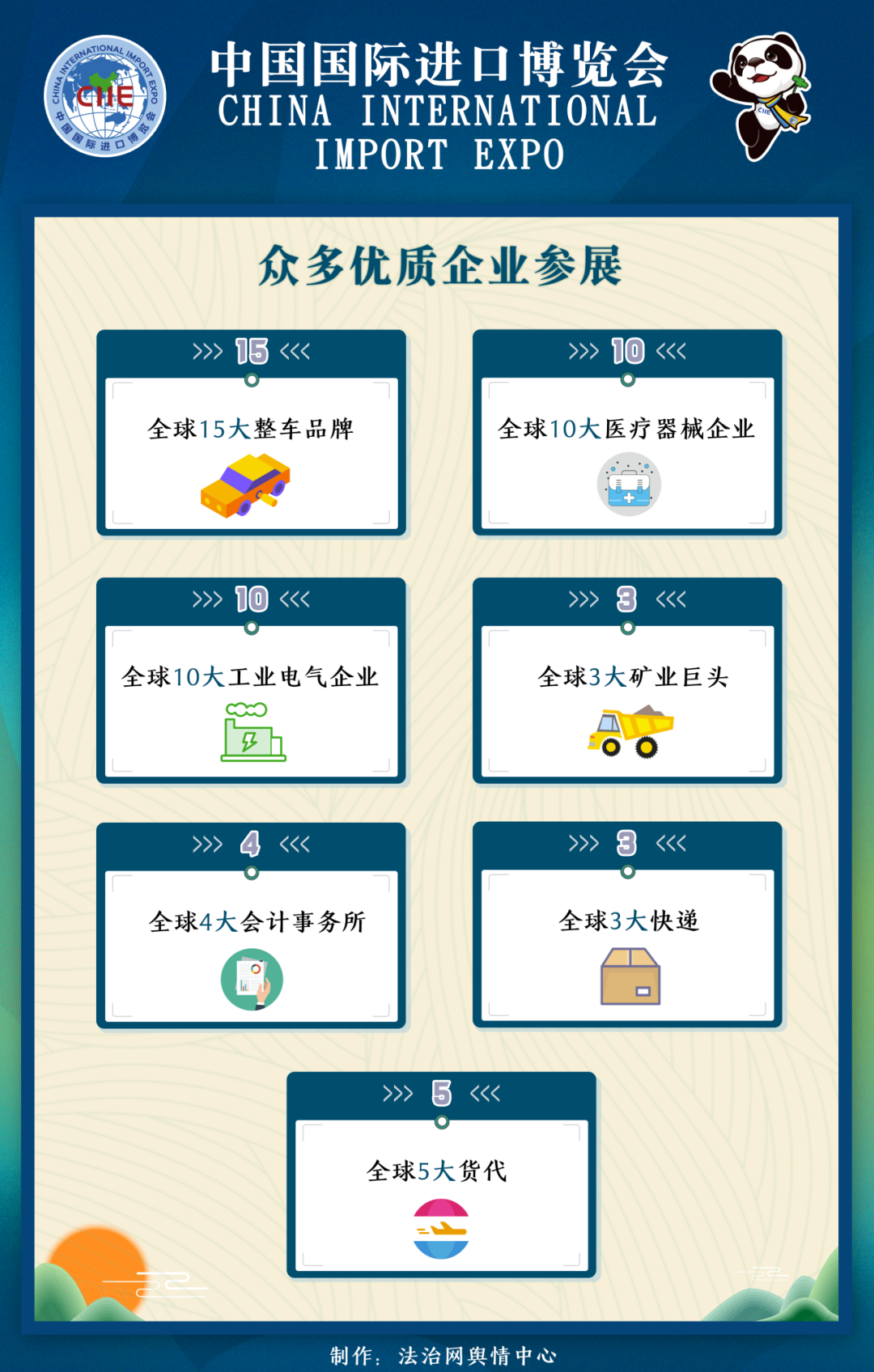 本屆進博會的展商“分量十足”:全球十五大整車品牌、十大醫(yī)療器械企業(yè)、十大工業(yè)電氣企業(yè)、三大礦業(yè)巨頭、四大會計師事務所、三大快遞、五大貨代等均齊聚進博會。同時,多家國際頭部展覽公司宣告回歸,為本屆進博會增色添彩。