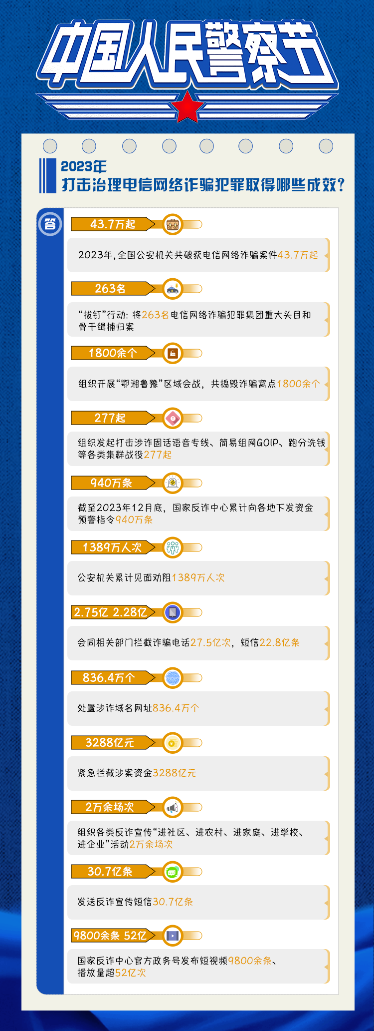 針對(duì)春運(yùn)出行、套現(xiàn)犯罪、電信網(wǎng)絡(luò)詐騙、制售偽劣保健品、便民利企改革措施等五方面人民群眾關(guān)心的熱點(diǎn)話題,公安部發(fā)言人專題答記者問。下面,讓小編帶您共同感受人民警察在解決群眾急難愁盼問題上的責(zé)任與擔(dān)當(dāng)。
