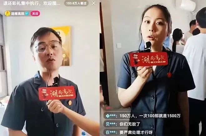 5月8日,湖南省高級人民法院的官方抖音賬號“湖南高院”開啟了“退還彩禮”集中執(zhí)行直播,引發(fā)網(wǎng)民圍觀。負(fù)責(zé)此次案件集中執(zhí)行的是寧鄉(xiāng)市人民法院執(zhí)行局。直播中,執(zhí)行人員化身主播解說退還彩禮的執(zhí)行案件,并實時回答網(wǎng)民提問,直播間熱度一度達(dá)到274萬人(次)。多數(shù)網(wǎng)民對此次活動表示支持,認(rèn)為相關(guān)形式值得推廣。