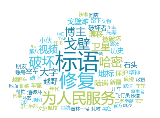 10月12日,微博大V“@鈞正平”評論稱,“這些標(biāo)語不但承載著建設(shè)者的汗水與信仰,更是中國共產(chǎn)黨人始終堅守的根本宗旨”“在標(biāo)語周邊肆意漂移,不僅破壞了自然地貌,更是對歷史記憶的踐踏和公眾感情的傷害”。在各方的對峙和爭論下,輿情熱度不斷上升,10月15日,新疆日報社官方微博“@天山網(wǎng)”報道稱,10月12日,哈密市委、市政府等部門召開專題會議,商討常態(tài)保護(hù)措施。10月14日,哈密市文化體育廣播電視和旅游局聯(lián)合多個部門相關(guān)工作人員來到巨幅航標(biāo)所在地,開展實地踏勘和調(diào)查處置工作。同時當(dāng)?shù)剡€將巨幅航標(biāo)納入到了第四次文物普查的范圍。官方的一系列保護(hù)措施贏得輿論好評。人民網(wǎng)刊發(fā)評論肯定了博主的修復(fù)工作和當(dāng)?shù)氐姆e極作為,并稱“讓每一處革命‘文物’被妥善保護(hù),讓每一個集體記憶和精神財富被銘記傳承,我們才能在前行的路上走得更穩(wěn)、更遠(yuǎn)”。輿情熱度到達(dá)峰值。